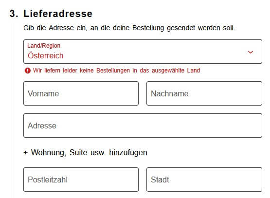 wichtige Information für Kunden aus Österreich & der Schweiz